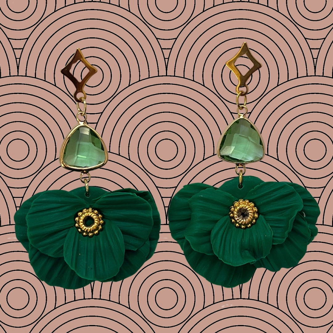 Aros de arcilla Polimérica moldeados a mano, acero enchapado y cristal verde agua colgante